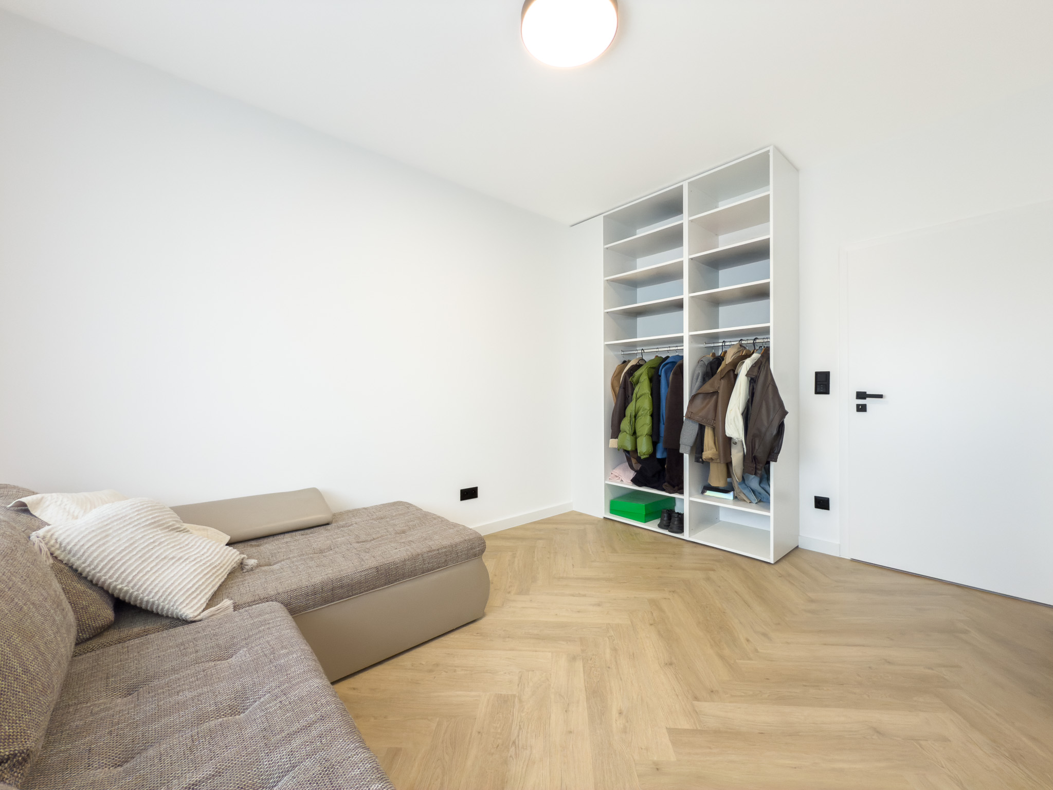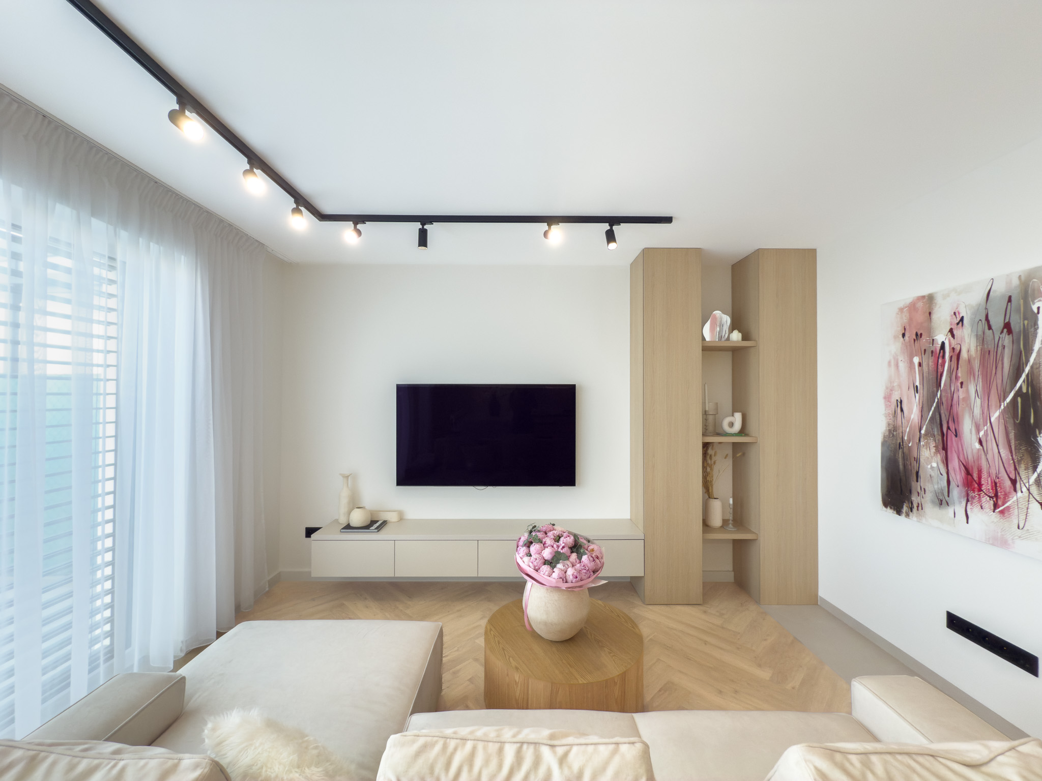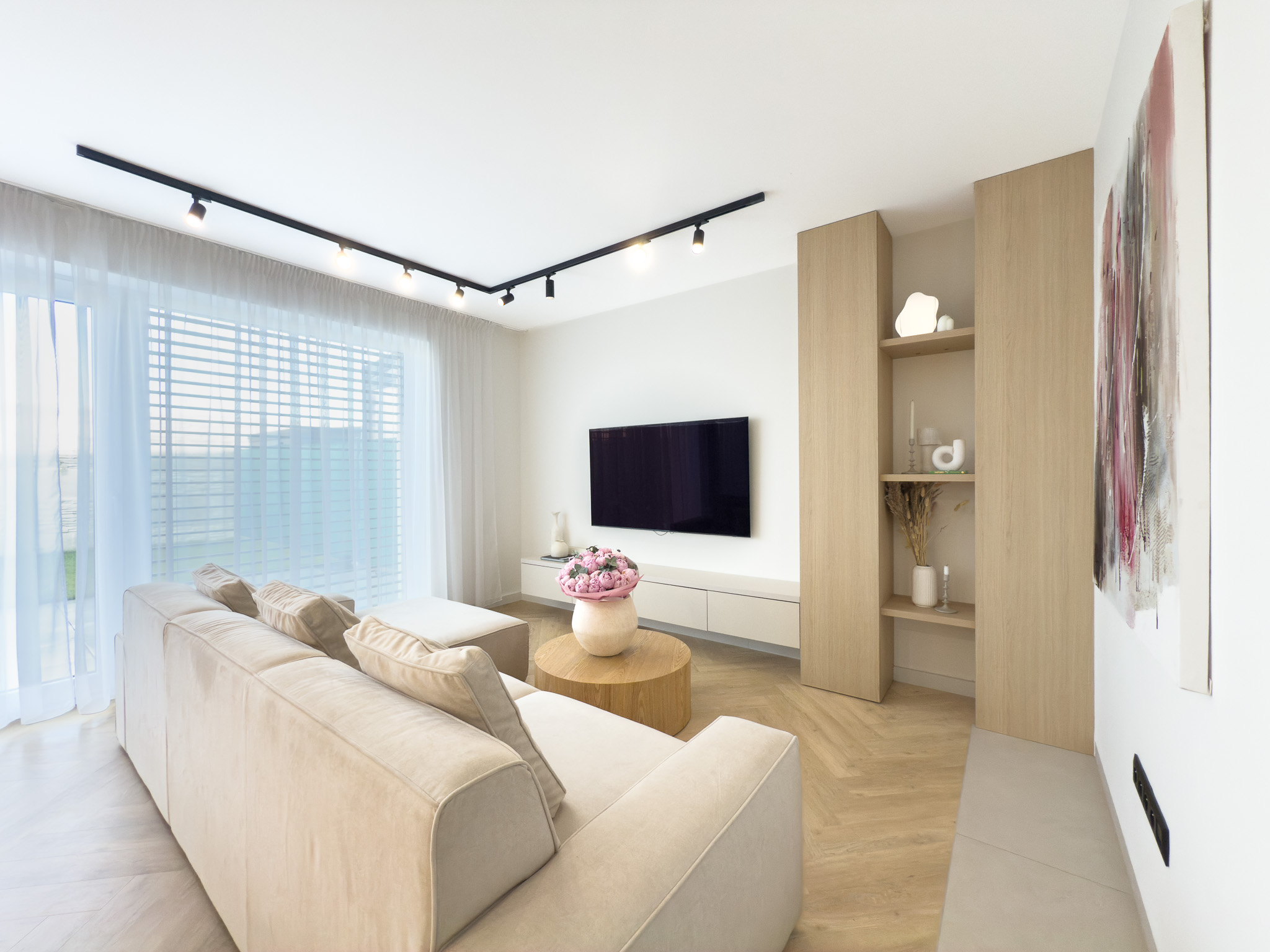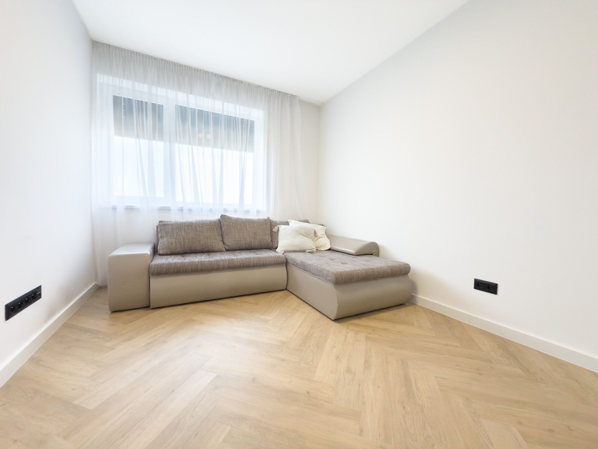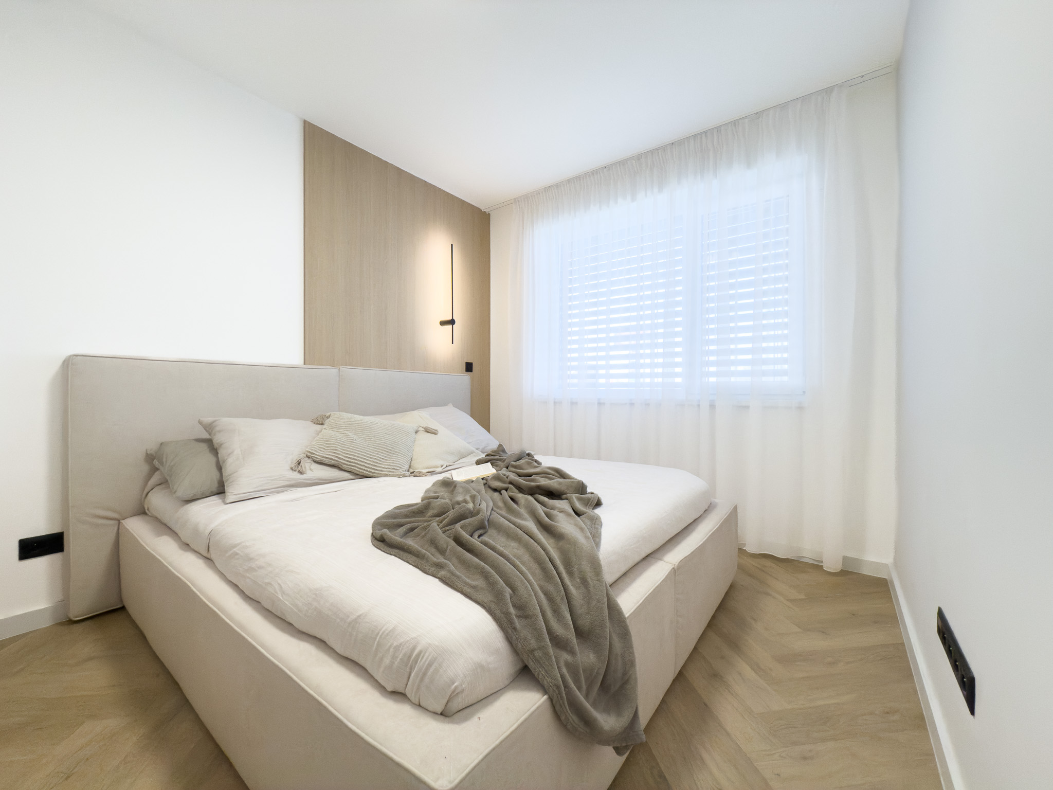 Nehnuteľnosť je kompletne zariadená kvalitným nábytkom a pripravená na okamžité nasťahovanie. Súčasťou vybavenia je tiež klimatizácia a vonkajšie žalúzie, ktoré zvyšujú komfort bývania počas celého roka. Interiér je ladený v modernom štýle s dôrazom na funkčnosť, čisté línie a dostatok úložného priestoru.