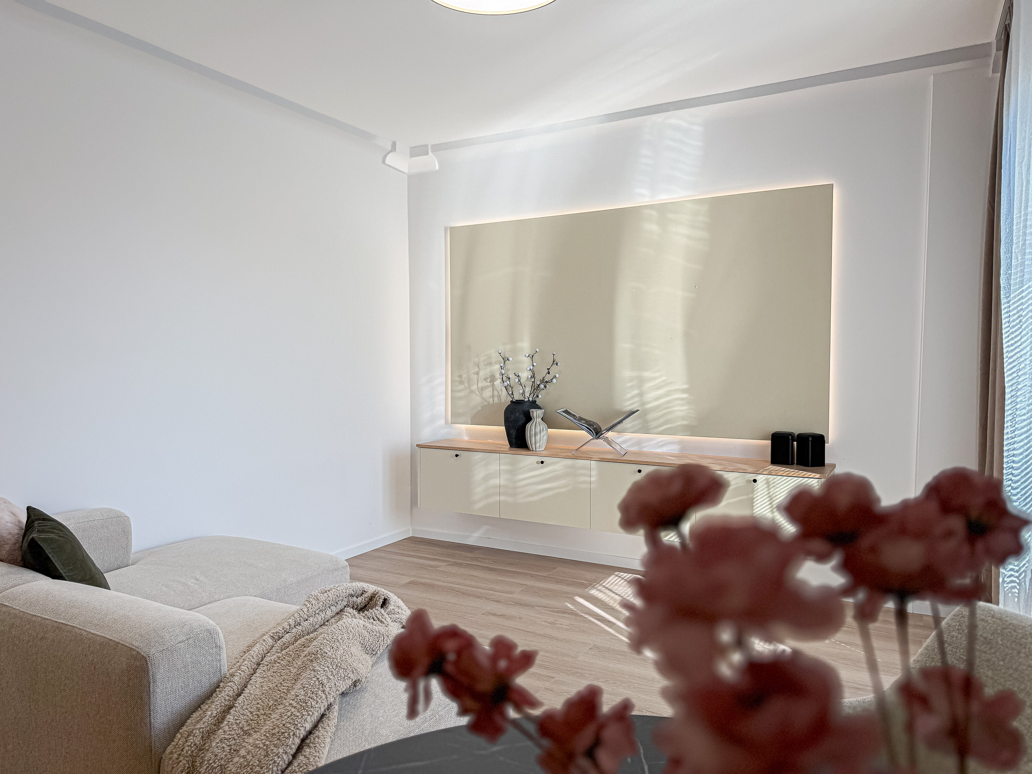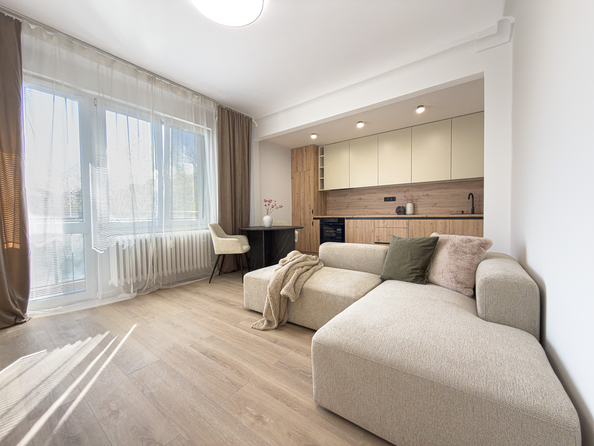 Všetky doplnky a dekorácie v byte sú súčasťou home stagingu realitnej kancelárie FIEBS.